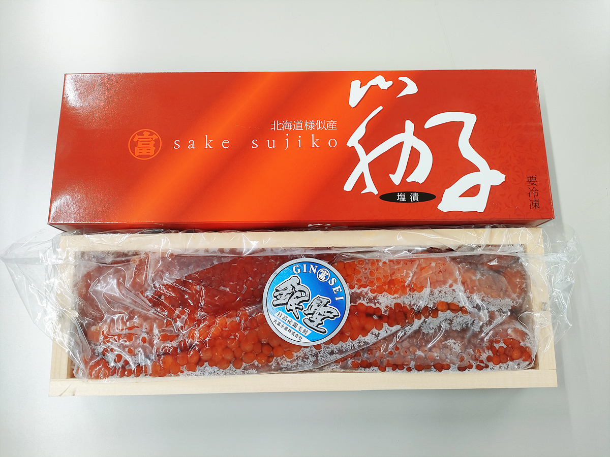 秋鮭塩筋子 500g 木箱 贈答用 すじこ スジコ 筋子 塩筋子 塩すじこ 銀聖 銀聖すじこ 銀聖筋子 秋鮭 鮭卵 魚卵 秋鮭塩筋子 500g 木箱 贈答用 すじこ スジコ 筋子 塩筋子 塩すじこ 銀聖 銀聖すじこ 銀聖筋子 秋鮭 鮭卵 魚卵 (grn00020) 秋鮭塩筋子 500g 日高沖で漁獲されたブランド鮭(銀聖)の成熟卵で塩漬けした筋子です。 木箱入り、化粧箱付きですので贈答用にもお使いいただけます。 数量限定品となります。 年末に向け値上げ傾向ですのでこの機会にぜひお買い求め下さい。 内容量 500g 原材料 鮭卵、食塩/発色剤(亜硝酸Na) 賞味期限 冷凍保存−18℃以下で約3ヶ月 発送方法 冷凍便 注意事項 在庫状態 : 在庫有り ¥8,900(税別) ( 税込¥9,612 ) 数量